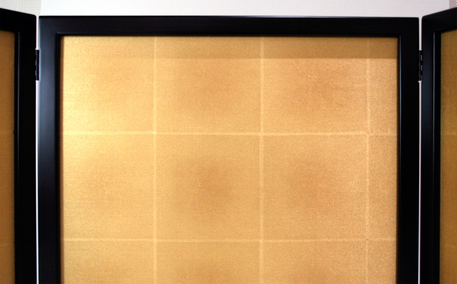 | 台屏風 | 五角黒檀風畳台/重ね金箔3曲屏風 |